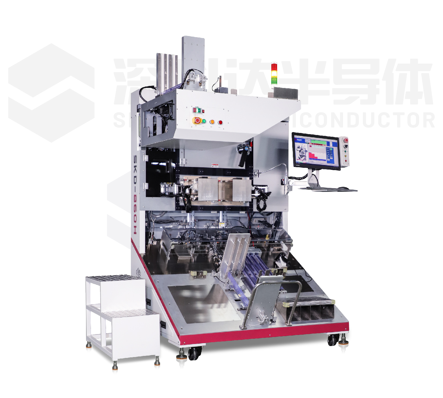 SKD860H test handler is a fully automatic sorting machine designed for IPM DIP series product package testing. The separator is equipped with multiple test stations in parallel with high temperature, which integrates high temperature heating, high temperature testing, product flipping, automatic BIN separation and function.