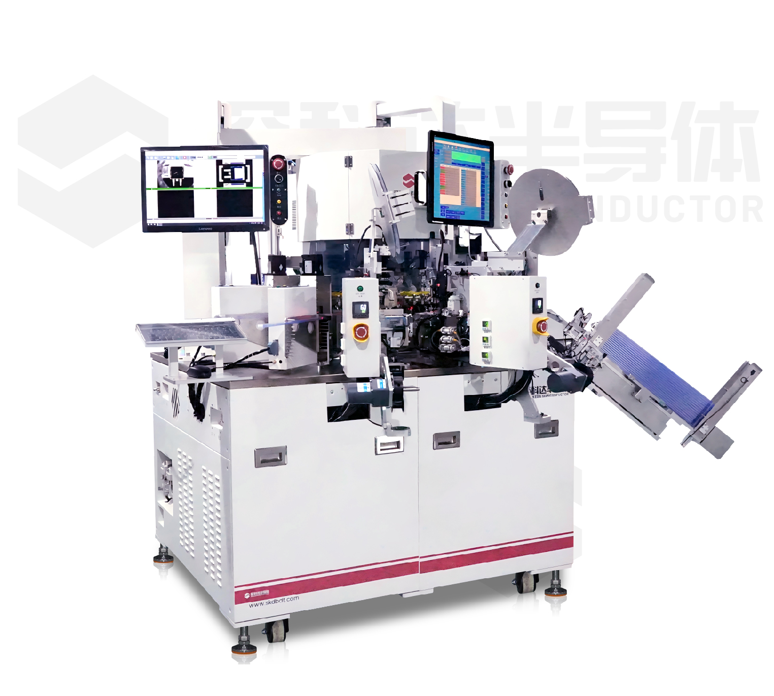 SKD936PLUS turret test handler for multi-functional test sorting needs, to meet the choice of more stations, flexible material supply with the way to support a variety of flexible configuration of the way out of the material, but also to meet the customer's more categorized and the capacity needs. at the same time take into account the larger size of the package products(TO220/263/247, TO251), the right-angle clamp test products such as TOLL6R, LFPAK, PPAK8X8, XJ836, TOLL6R, LFPAK, PPAK8X8, XJ836 and other right-angle clamping products).