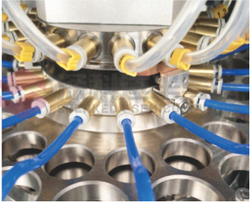 Test station has poka-yoke function: the test station is equipped with stacked material detection, to eliminate the quality problems caused by jamming material; each test station has color and hardware poka-yoke. | The taping station adopts the new rail-type structure, which is simpler to use, more efficient, stable, with lower failure rate. It can be optionally equipped with vision inspection function after sealing. | The vacuum of the main turret is supplied by the upper and lower split air discs, which is simpler in structure and maintenance. |