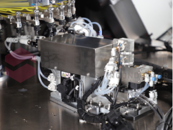 ● Main turret: the main turret is equipped with 36 pickheads driven by DDR motor, which can accurately send the product to the center of each station through the adsorption of the pickhead.